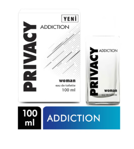 Privacy Kadın Parfümü Edt 100 ml Addiction Privacy Addiction, modern kadının enerjisini ve zarafetini yansıtan özel bir parfümdür. Çekici ve kalıcı kokusuyla gün boyu teninizde etkisini hissettirir. Zarif notaların birleşimi sayesinde feminen bir hava kazandırır ve bulunduğunuz her ortamda fark edilmenizi sağlar. Gündüzden geceye her an kullanıma uygun yapısıyla gardırobunuzun vazgeçilmez tamamlayıcısıdır.